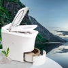 This waterless incineration toilet Cinderella Comfort is Cinderella Eco Group’s latest concept for cabins and holiday homes, renowned for its sustainable and environmentally friendly design and performance, with no polluting emissions. Comfort comes with a closed air system, which creates a better indoor environment and doesn’t affect the temperature of the room where the toilet is installed. Cinderella Comfort also comes with an LCD display that shows notifications and status at all times.
