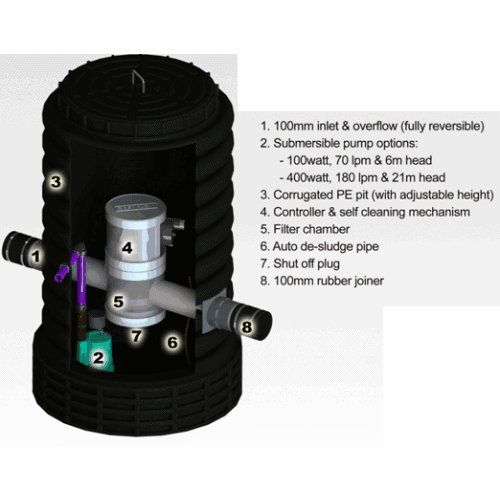 This grey water recycling system is the most powerful diversion system available in the market.