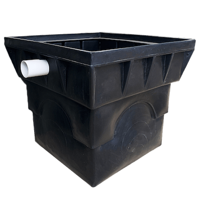 A 45 litre grease trap is supplied as standard to remove food scraps and grease from kitchen waste water. A 300 litre grease trap is also available for larger households. Some councils also insist on large grease traps to extend the life of the trenches. The 45 L trap is self-cleaned by retrieving a washable filter every 6 weeks or so, the 300 L trap needs cleaning every 1-2 years.