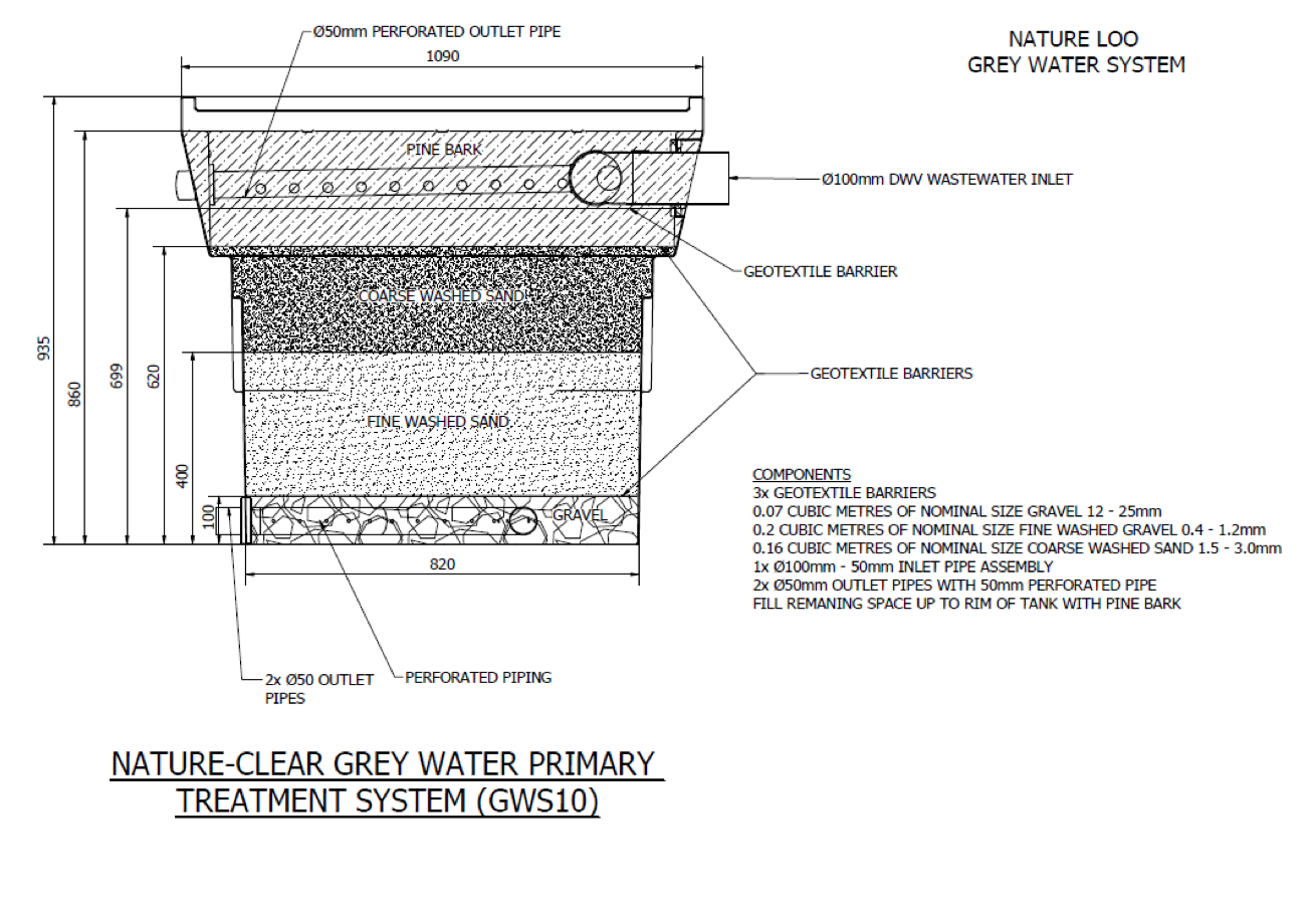 Nature Clear GWS10 provides a simple and cost effective means of disposal of dark grey water. Not only is the equipment low cost, but also, if your site is suitable, the only significant excavation work required to install the system will be the trenching.