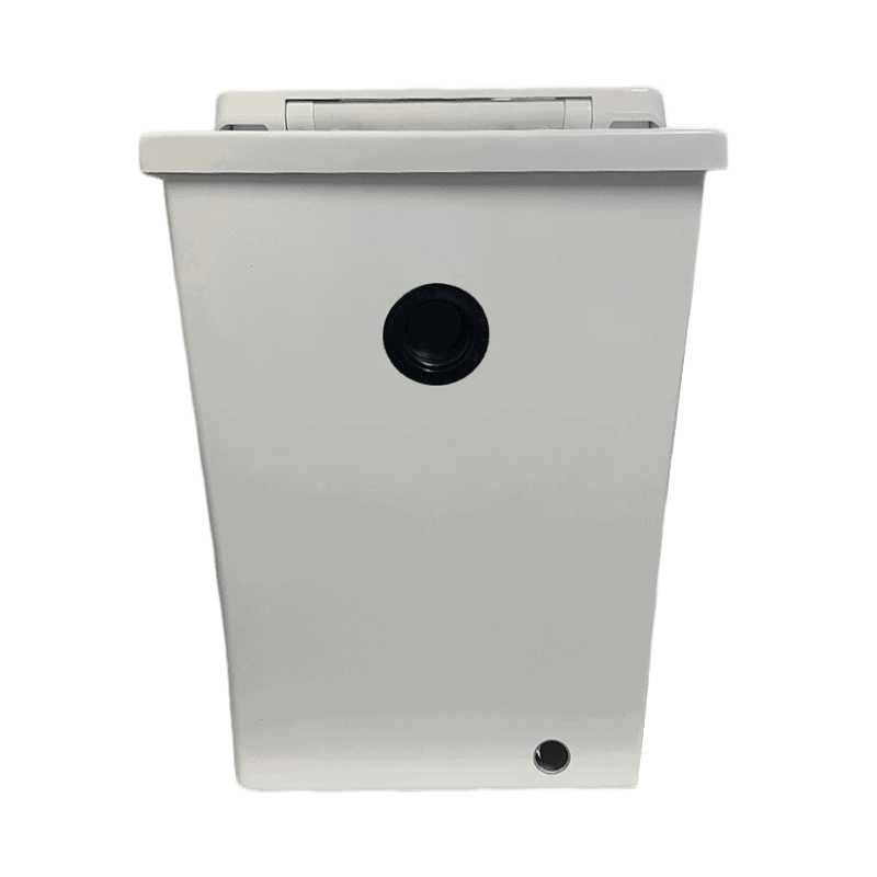 This style of waterless toilet using biobags is common in Europe and America. The differentiating point of the MINI, apart from its good looks and superior finish, is the large size of its bin at 20 litres. The means the collection bin will only require emptying twice a month when used by a couple as their only toilet.