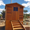 The CEDAR Outhouse range is manufactured in Australia and is constructed of 42 x 35mm treated pine framing (H3-LOSP Treatment) and 18mm thick Canadian Western Red Cedar VJ cladding. It has a Colorbond steel roof. The Quadrant 6×6 Outhouse is supplied in an easy to assemble kit with pre-made panels. The panels come in raw timber (not stained or painted) allowing you to select the finish of your choice. The unit can be sited on a concrete base or paved area, or a flooring kit can be used.
